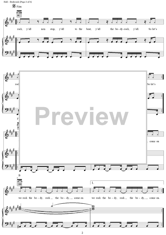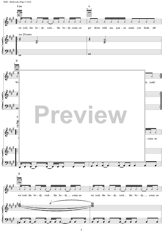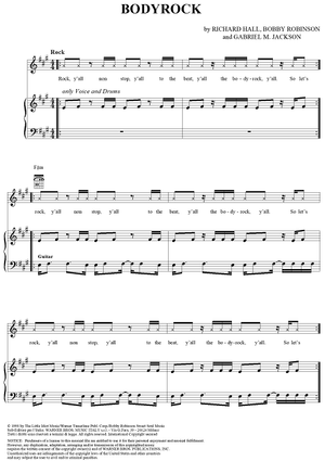 Digital Sheet Music for Bodyrock by Moby, Richard Hall, Gabriel M. Jackson scored for Piano/Vocal/Chords/Drums; id:284178