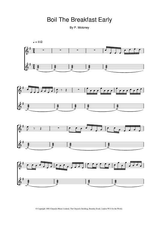 "Boil The Breakfast Early" Sheet Music by The Chieftains