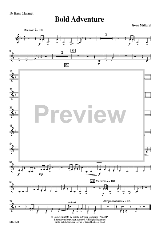 "Bold Adventure - Bb Bass Clarinet" Sheet Music by Gene Milford