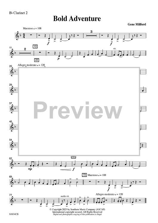 "Bold Adventure - Bb Clarinet 2" Sheet Music by Gene Milford
