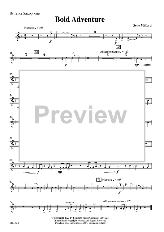 "Bold Adventure - Bb Tenor Sax" Sheet Music by Gene Milford