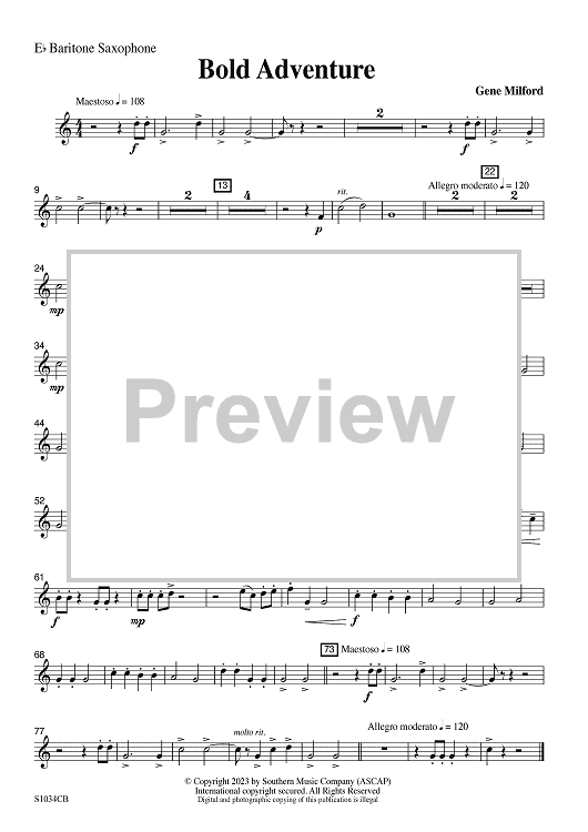 "Bold Adventure - Eb Baritone Sax" Sheet Music by Gene Milford