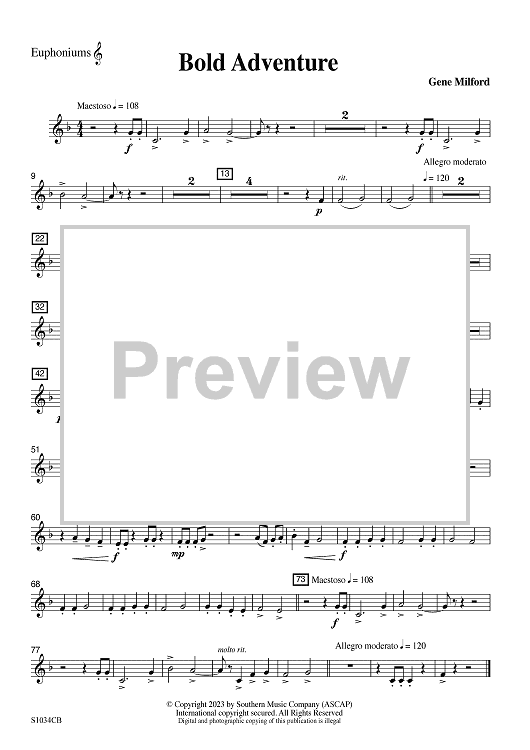 Digital Sheet Music for Bold Adventure - Euphonium TC by Gene Milford scored for Concert Band; id:502562