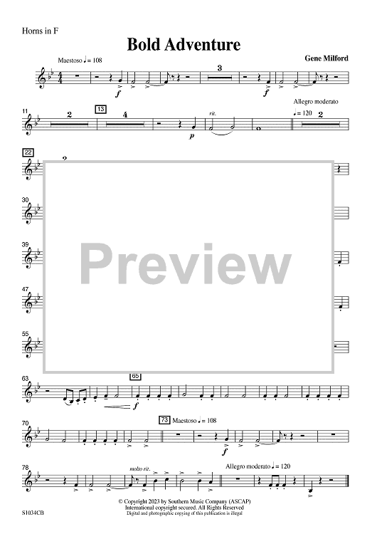 Digital Sheet Music for Bold Adventure - F Horn by Gene Milford scored for Concert Band; id:502560