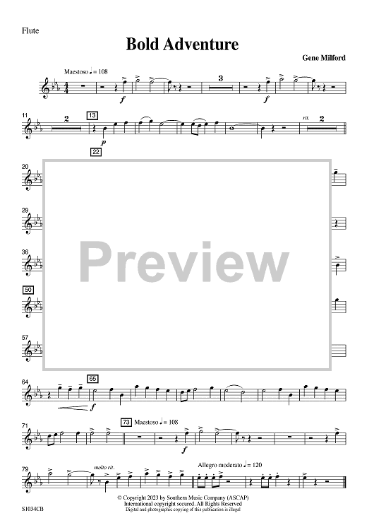"Bold Adventure - Flute" Sheet Music by Gene Milford