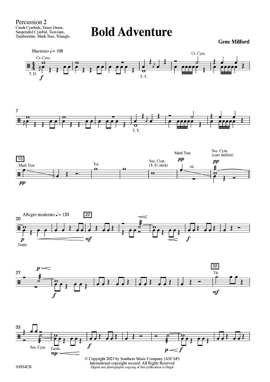 Digital Sheet Music for Bold Adventure - Percussion 2 by Gene Milford scored for Concert Band; id:502567