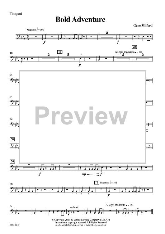 "Bold Adventure - Timpani" Sheet Music by Gene Milford