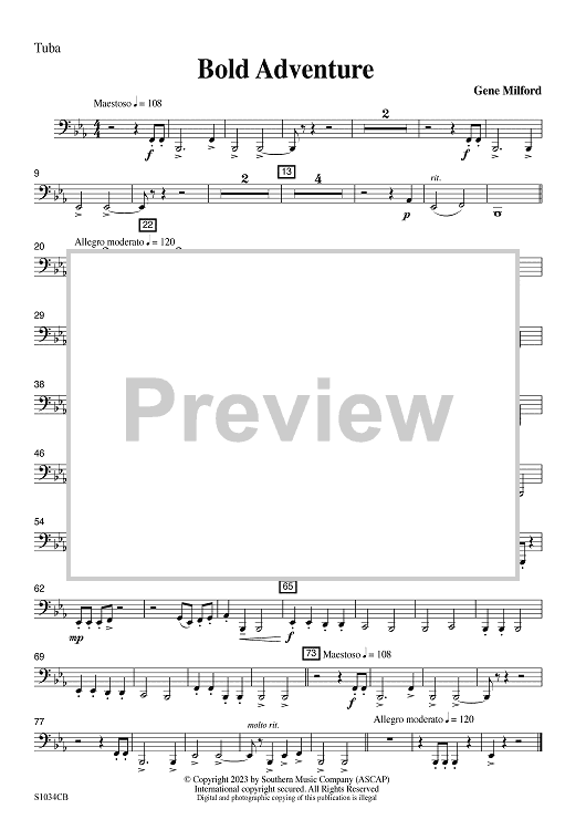 Digital Sheet Music for Bold Adventure - Tuba by Gene Milford scored for Concert Band; id:502563
