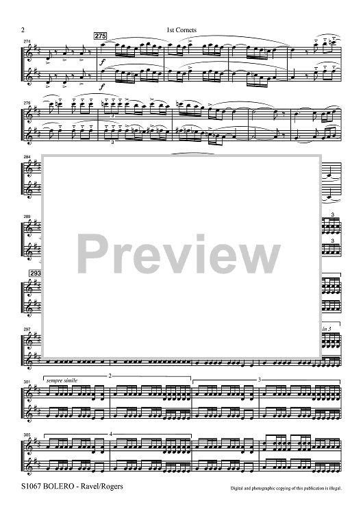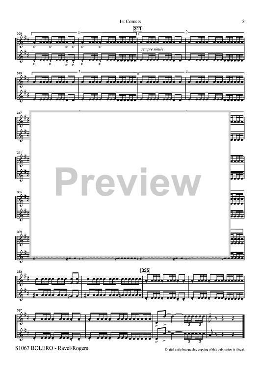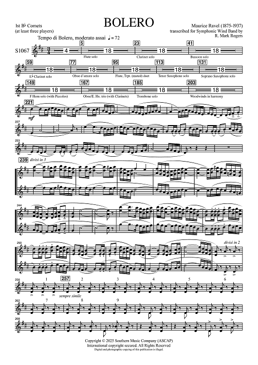 Digital Sheet Music for Bolero for Band - 1st Bb Cornets by Maurice Ravel, R. Mark Rogers scored for Concert Band; id:507498
