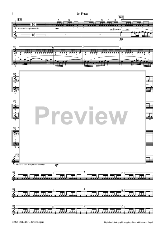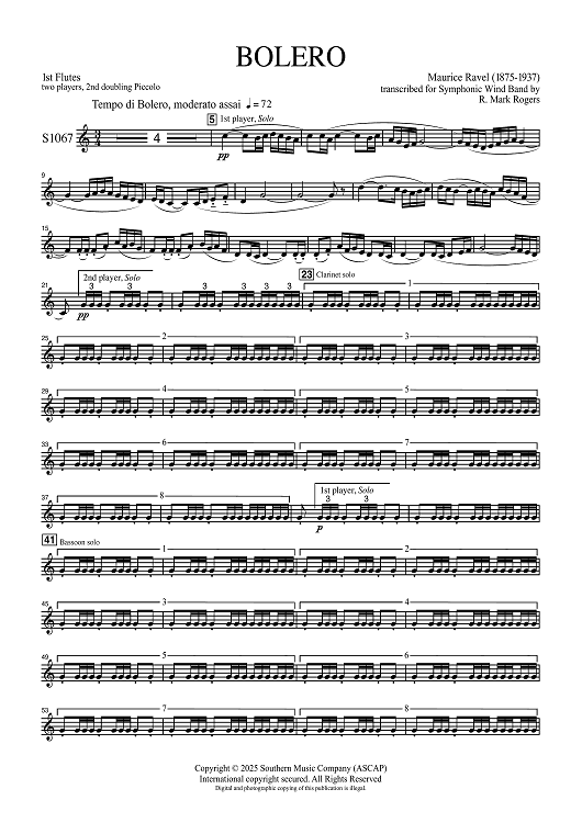 Digital Sheet Music for Bolero for Band - 1st Flutes by Maurice Ravel, R. Mark Rogers scored for Concert Band; id:507471
