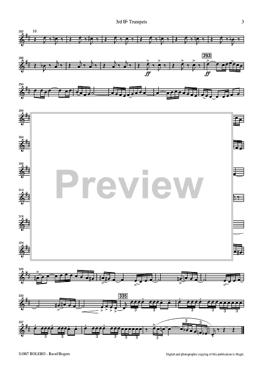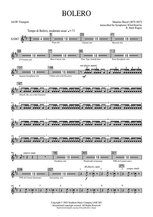 Digital Sheet Music for Bolero for Band - 3rd Bb Trumpets by Maurice Ravel, R. Mark Rogers scored for Concert Band; id:507497