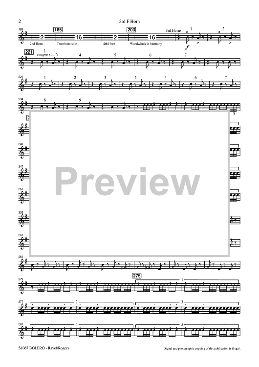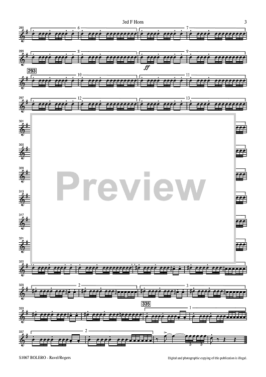 Digital Sheet Music for Bolero for Band - 3rd F Horn by Maurice Ravel, R. Mark Rogers scored for Concert Band; id:507502