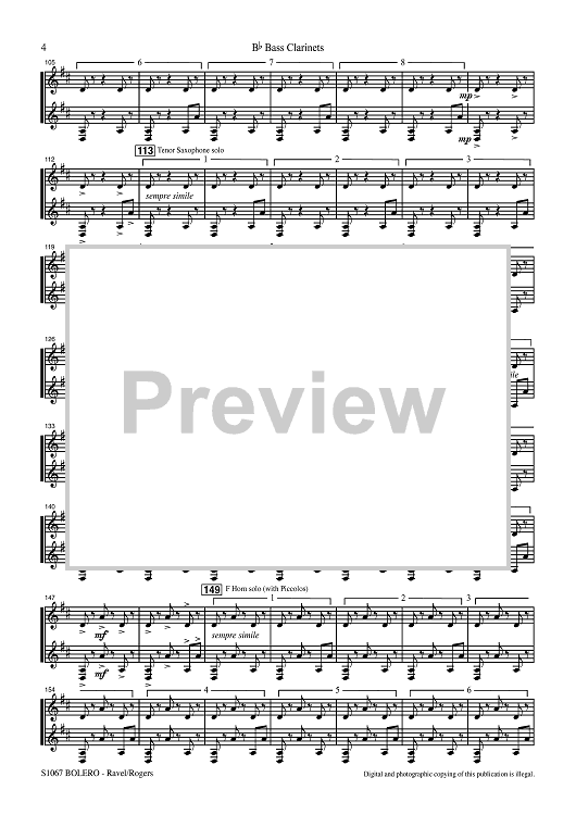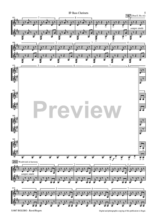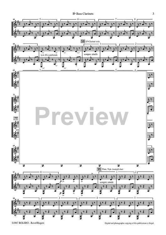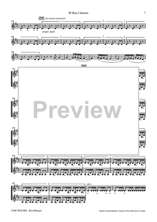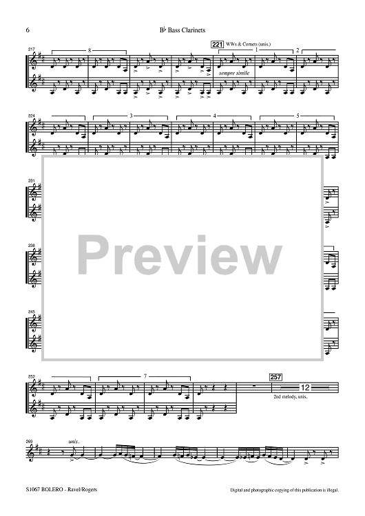 Digital Sheet Music for Bolero for Band - Bb Bass Clarinets by Maurice Ravel, R. Mark Rogers scored for Concert Band; id:507483