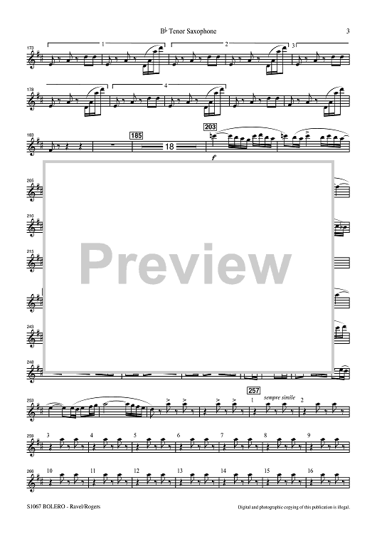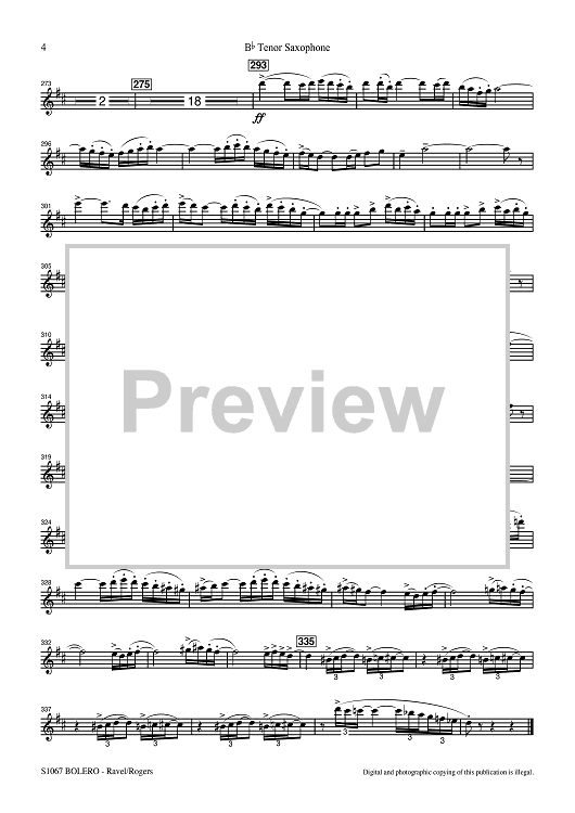 Digital Sheet Music for Bolero for Band - Bb Tenor Saxophone by Maurice Ravel, R. Mark Rogers scored for Concert Band; id:507491