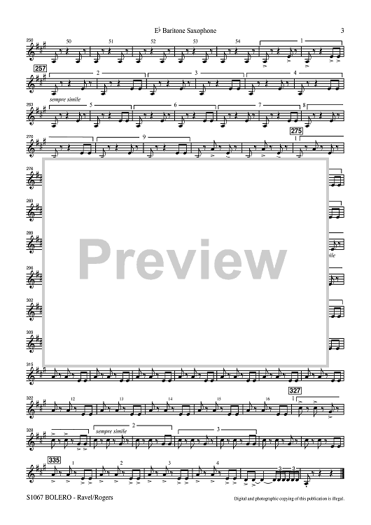 Digital Sheet Music for Bolero for Band - Eb Baritone Saxophone by Maurice Ravel, R. Mark Rogers scored for Concert Band; id:507492