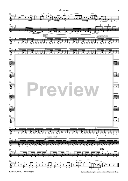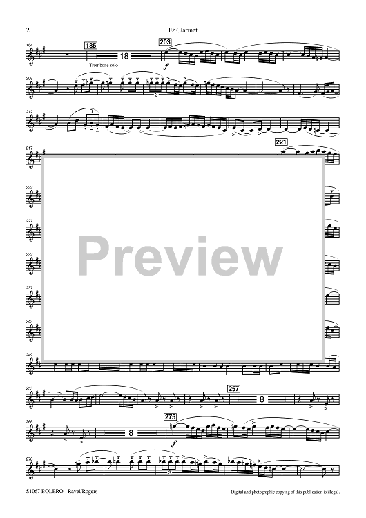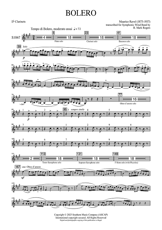 Digital Sheet Music for Bolero for Band - Eb Clarinet by Maurice Ravel, R. Mark Rogers scored for Concert Band; id:507476