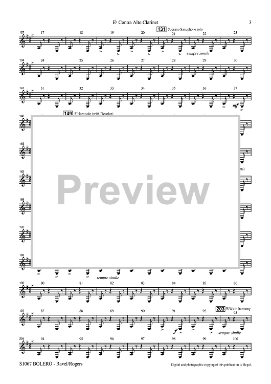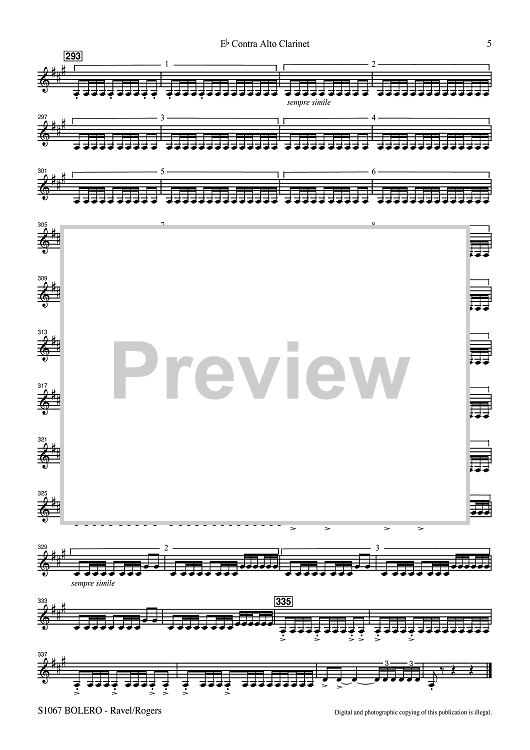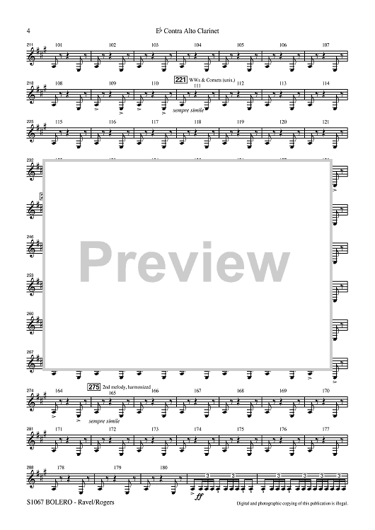 Digital Sheet Music for Bolero for Band - Eb Contra Alto Clarinet by Maurice Ravel, R. Mark Rogers scored for Concert Band; id:507484