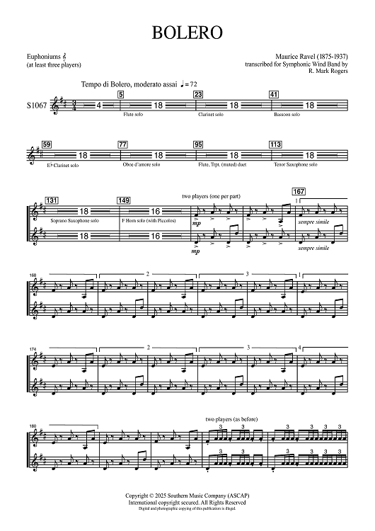 Digital Sheet Music for Bolero for Band - Euphoniums TC by Maurice Ravel, R. Mark Rogers scored for Concert Band; id:507507