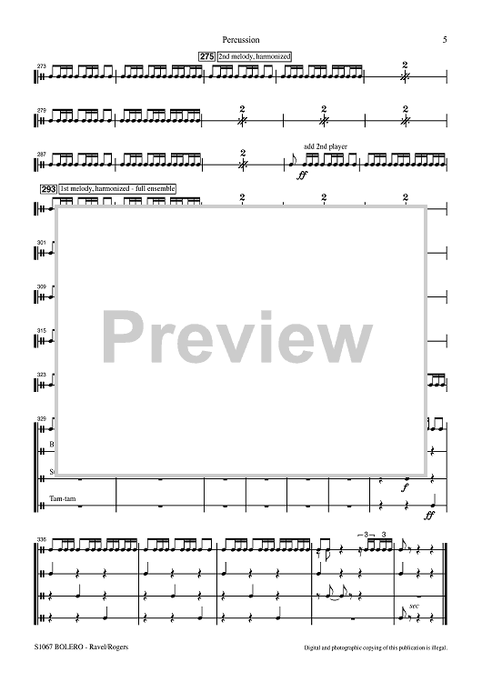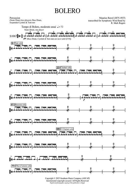 Digital Sheet Music for Bolero for Band - Percussion by Maurice Ravel, R. Mark Rogers scored for Concert Band; id:507512