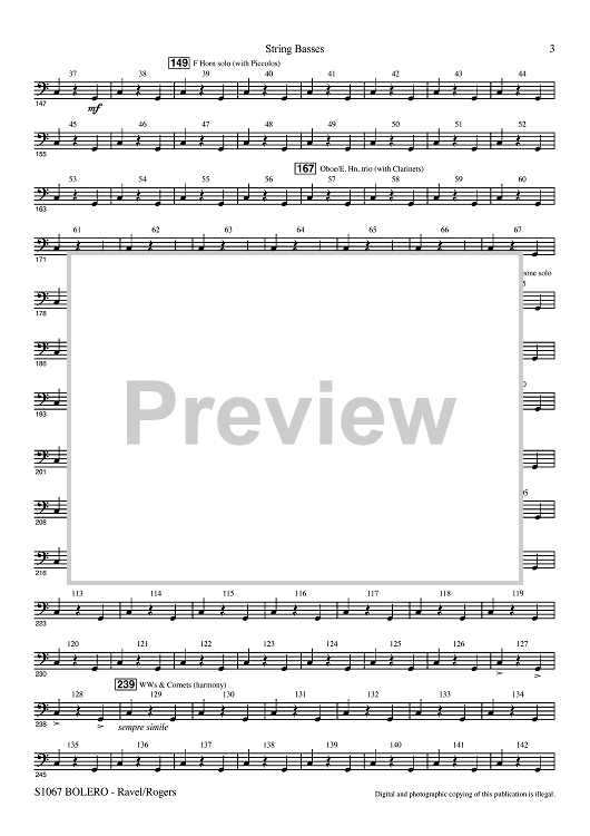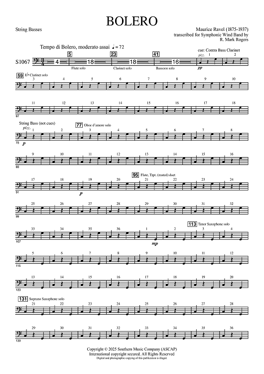 Digital Sheet Music for Bolero for Band - String Basses by Maurice Ravel, R. Mark Rogers scored for Concert Band; id:507510