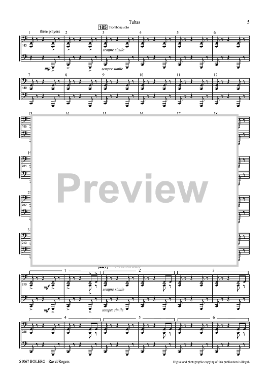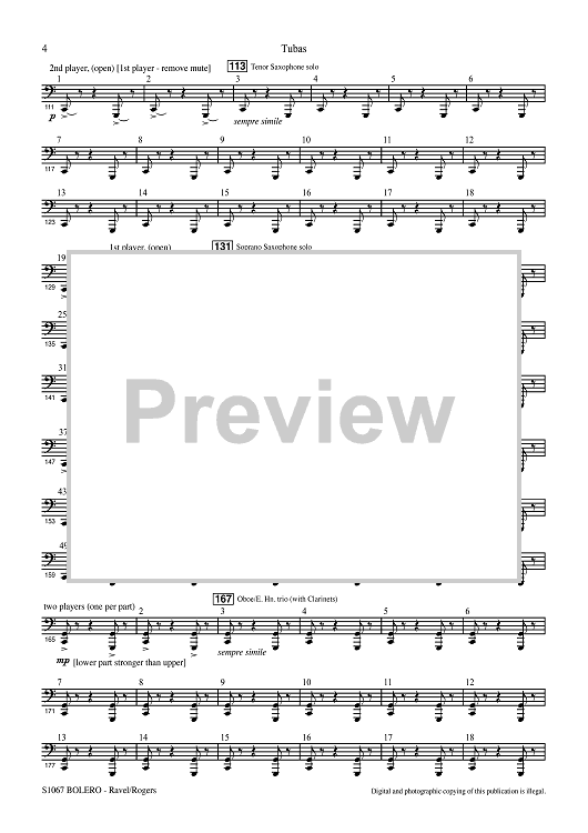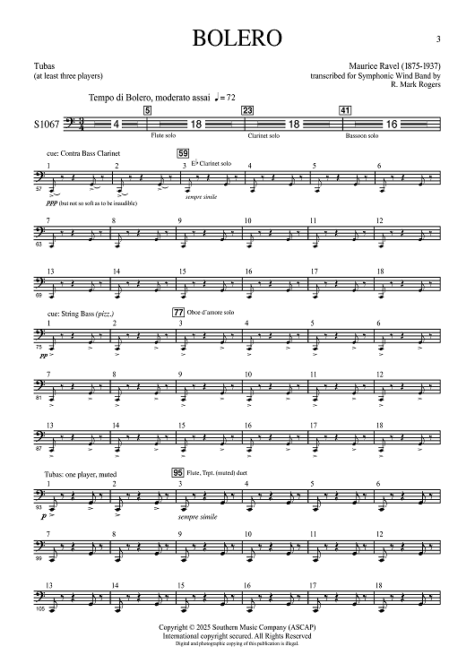 Digital Sheet Music for Bolero for Band - Tubas by Maurice Ravel, R. Mark Rogers scored for Concert Band; id:507509