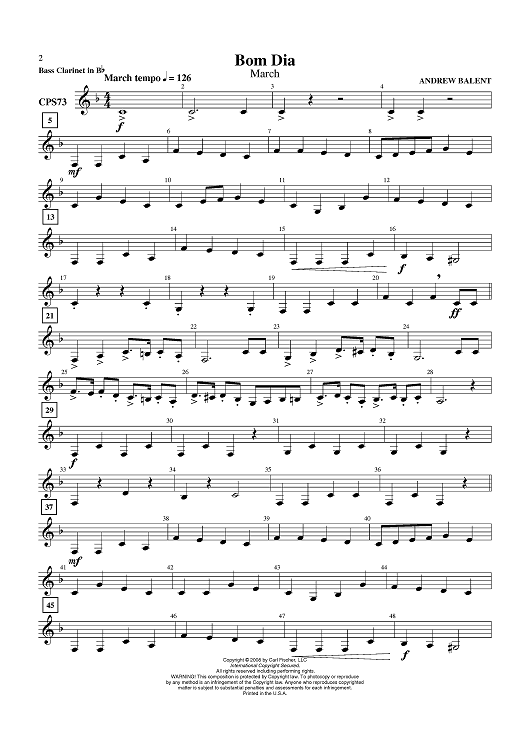 Digital Sheet Music for Bom Dia - Bass Clarinet in B-flat by Andrew Balent scored for Concert Band; id:408615