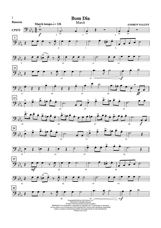Digital Sheet Music for Bom Dia - Bassoon by Andrew Balent scored for Concert Band; id:408616