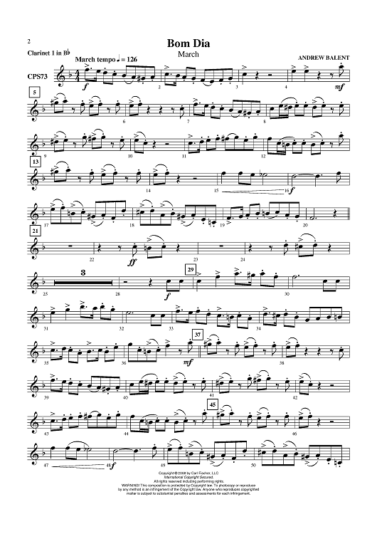 Digital Sheet Music for Bom Dia - Clarinet 1 in B-flat by Andrew Balent scored for Concert Band; id:408612