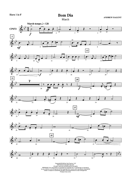 Digital Sheet Music for Bom Dia - Horn in F 1 by Andrew Balent scored for Concert Band; id:408624