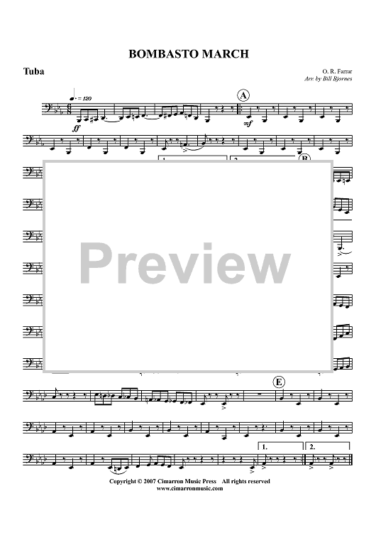 Digital Sheet Music for Bombasto March - Tuba by , O. R. Farrar, Bill Bjornes scored for Brass Quintet; id:360837
