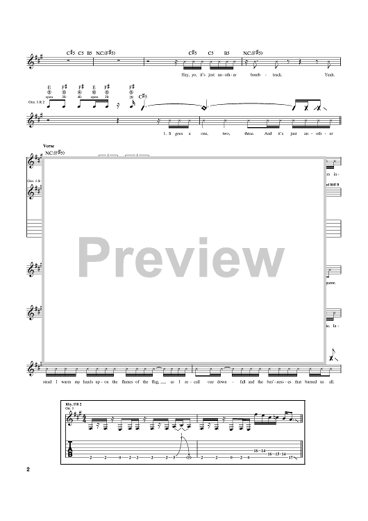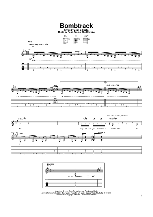 Digital Sheet Music for Bombtrack by Rage Against the Machine scored for Guitar Tab; id:368941