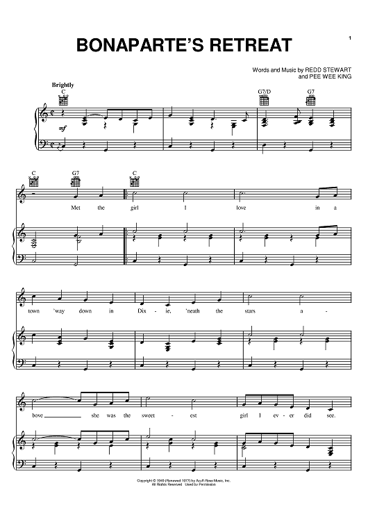 Digital Sheet Music for Bonaparte's Retreat by Redd Stewart, Pee Wee King, Glen Campbell scored for Piano/Vocal/Chords; id:383483