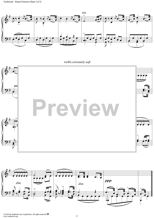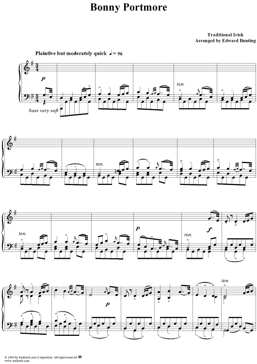 Digital Sheet Music for Bonny Portmore by , Edward Bunting, Traditional scored for Piano Solo; id:234648