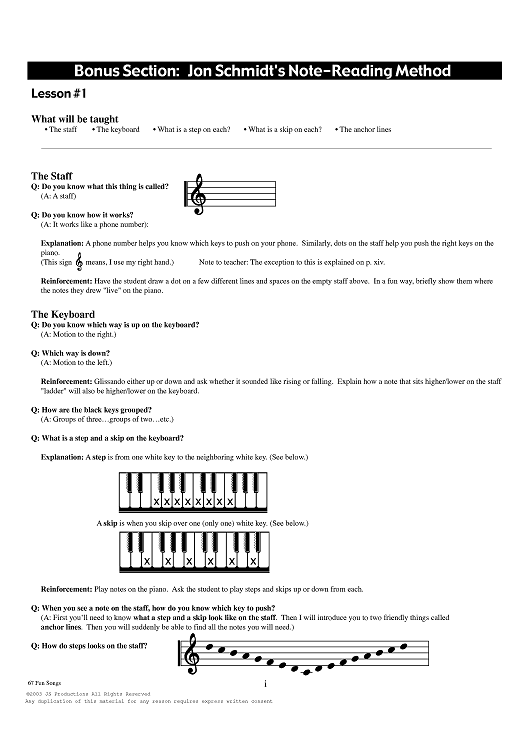 Digital Sheet Music for Bonus Section: Jon Schmidt's Note-Reading Method - 67 Fun Songs - Bonus Material by , Jon Schmidt scored for Piano; id:411443