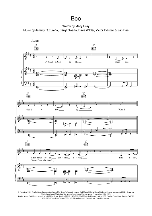Digital Sheet Music for Boo by Macy Gray scored for Piano/Vocal/Chords; id:377458