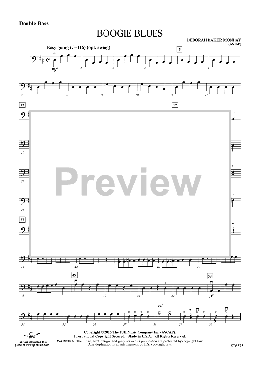 "Boogie Blues - Double Bass" Sheet Music by Deborah Baker Monday