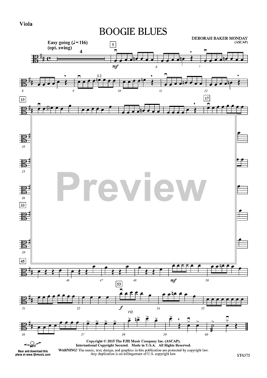 "Boogie Blues - Viola" Sheet Music by Deborah Baker Monday