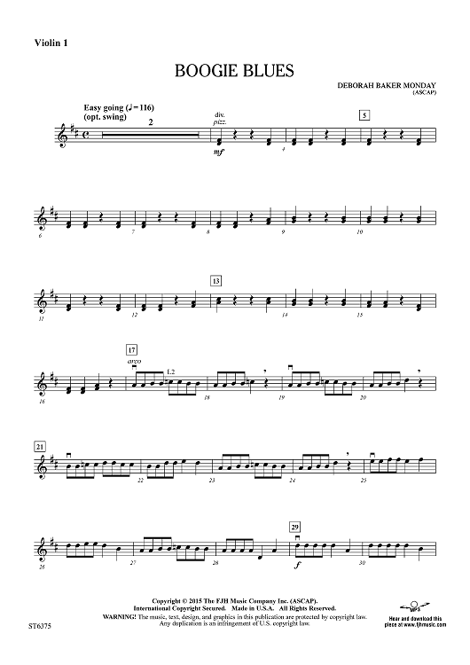 "Boogie Blues - Violin 1" Sheet Music by Deborah Baker Monday