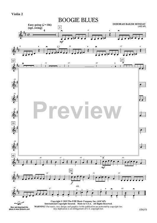 "Boogie Blues - Violin 2" Sheet Music by Deborah Baker Monday