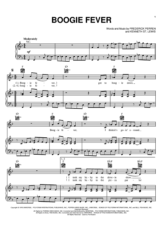 Digital Sheet Music for Boogie Fever by Frederick Perren, Kenneth St. Lewis, The Sylvers scored for Piano/Vocal/Chords; id:384002