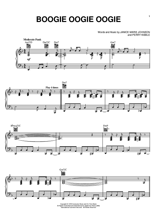 "Boogie Oogie Oogie" Sheet Music by A Taste Of Honey