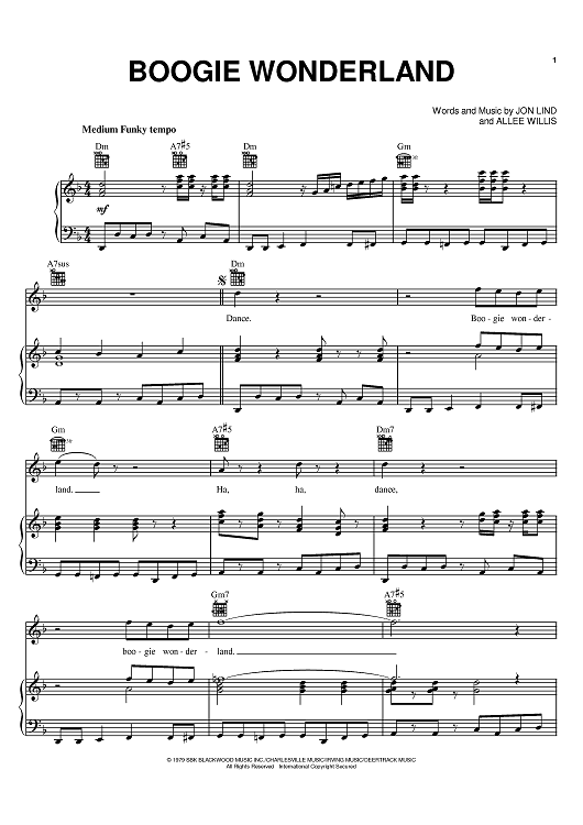 Digital Sheet Music for Boogie Wonderland by Jon Lind, Allee Willis, Earth, Wind & Fire scored for Piano/Vocal/Chords; id:395443