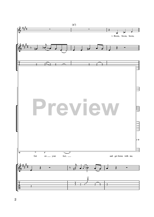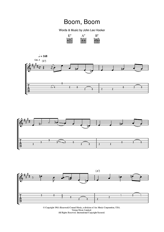 Digital Sheet Music for Boom Boom by John Lee Hooker scored for Guitar Tab; id:401232