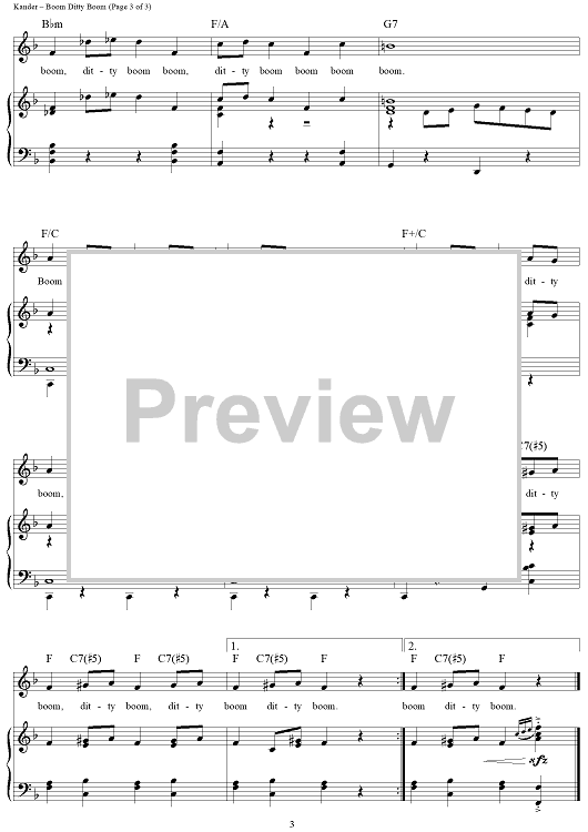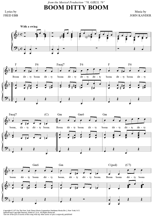 Digital Sheet Music for Boom Ditty Boom by John Kander, Fred Ebb scored for Piano/Vocal/Chords; id:366029