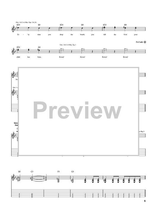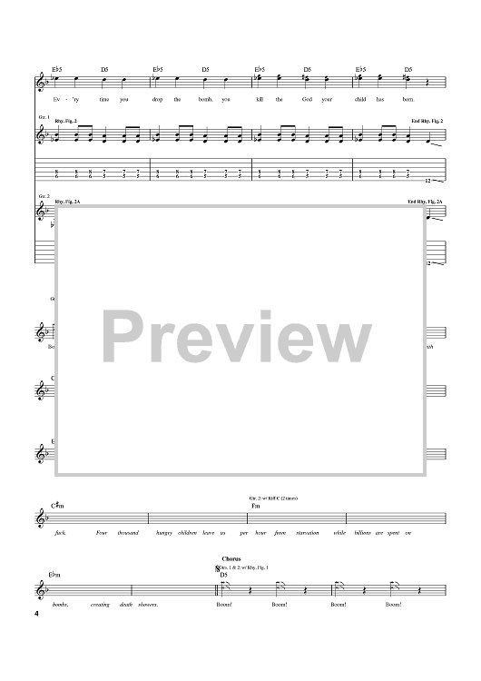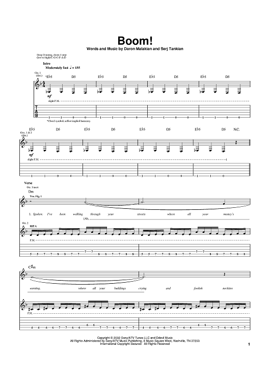 Digital Sheet Music for Boom! by Daron Malakian, System Of A Down, Serj Tankian scored for Guitar Tab; id:370639