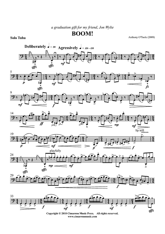 Digital Sheet Music for Boom! by Anthony O'Toole scored for Solo Tuba; id:427604