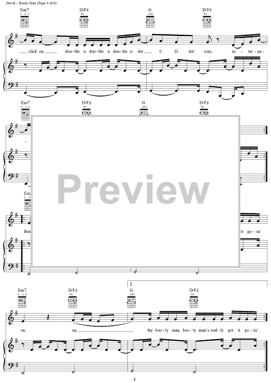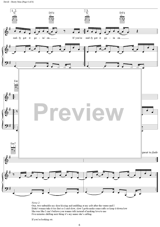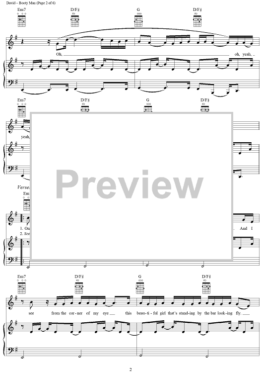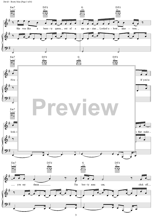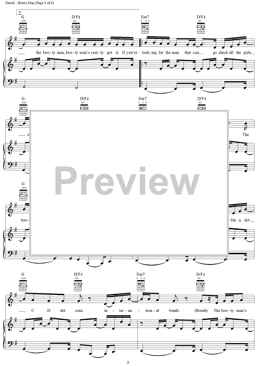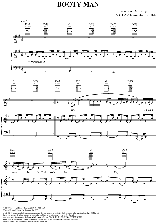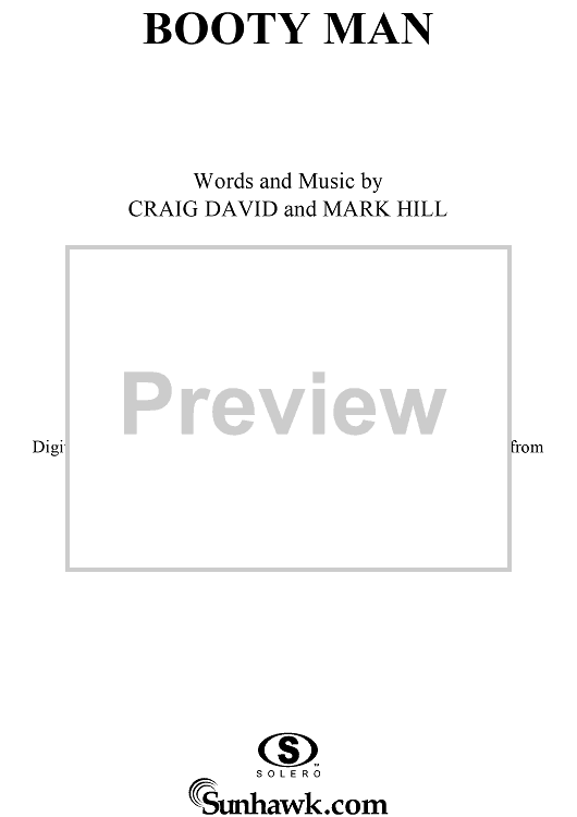 Digital Sheet Music for Booty Man by Craig David, Mark Hill scored for Piano/Vocal/Chords; id:284948