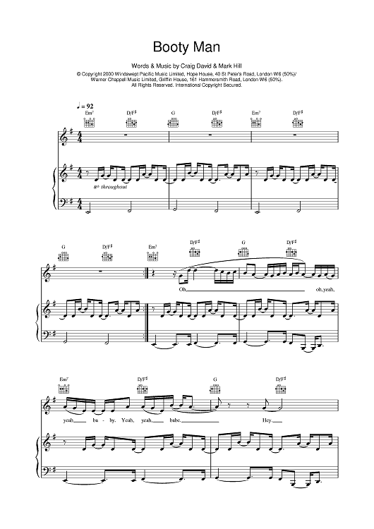 Digital Sheet Music for Booty Man by Craig David, Mark Hill scored for Piano/Vocal/Chords; id:377165