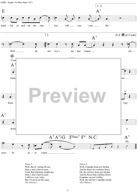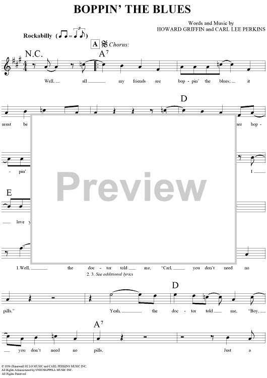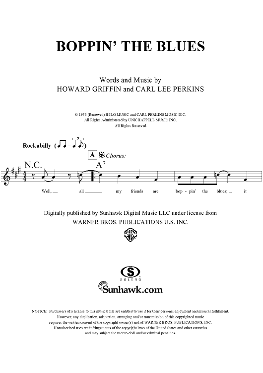 Digital Sheet Music for Boppin' the Blues by Carl Lee Perkins, Howard Griffin scored for Lead Sheet; id:290817