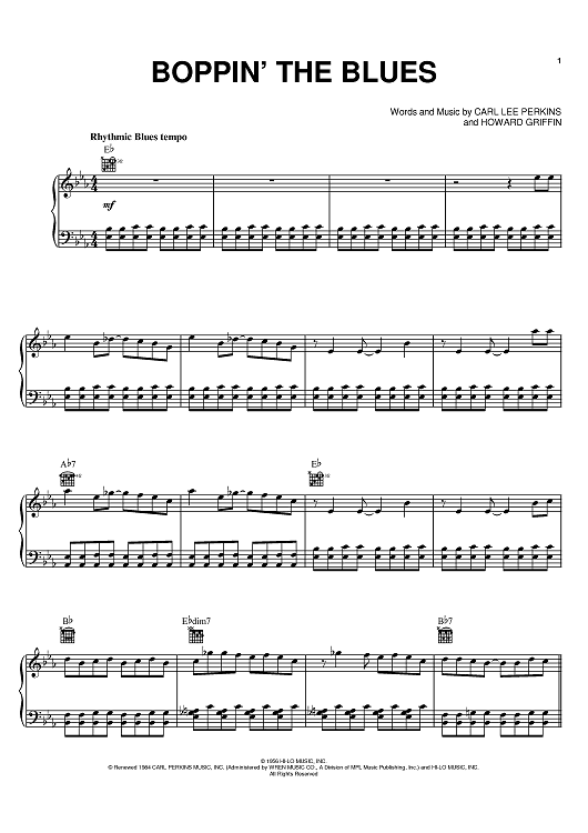 Digital Sheet Music for Boppin' The Blues by Carl Perkins, Howard Griffin scored for Piano/Vocal/Chords; id:397611